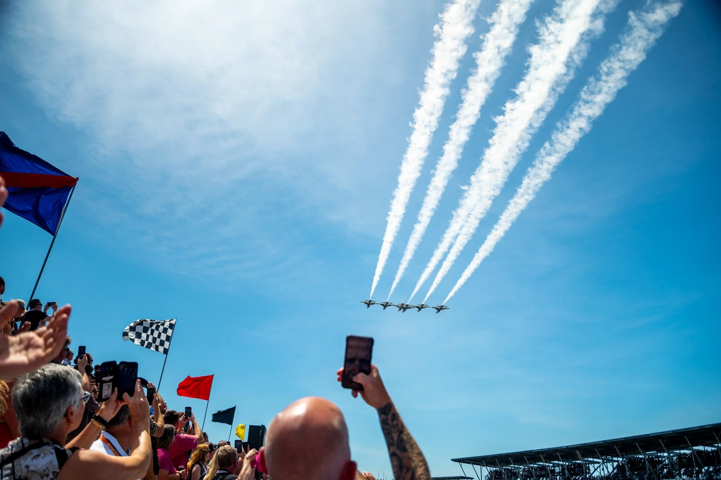 When I finally saw all that I could see in the pit lane we headed back to the suite to get ready for the start of the 106th Indy500 race. I was told that I should see and experience the beginning of the race right above in the bleachers to get the feel and listen to the roaring cars hitting their engines and the fans cheering and screaming as the race kicks off. And of course, that’s what I did. Right before the start, we heard top performers singing the “America The Beautiful”, “(Back Home Again In) Indiana” and “The National Anthem”. And to top it off, the U.S. Air Force Thunderbirds flyover which is always cool see in these race events.