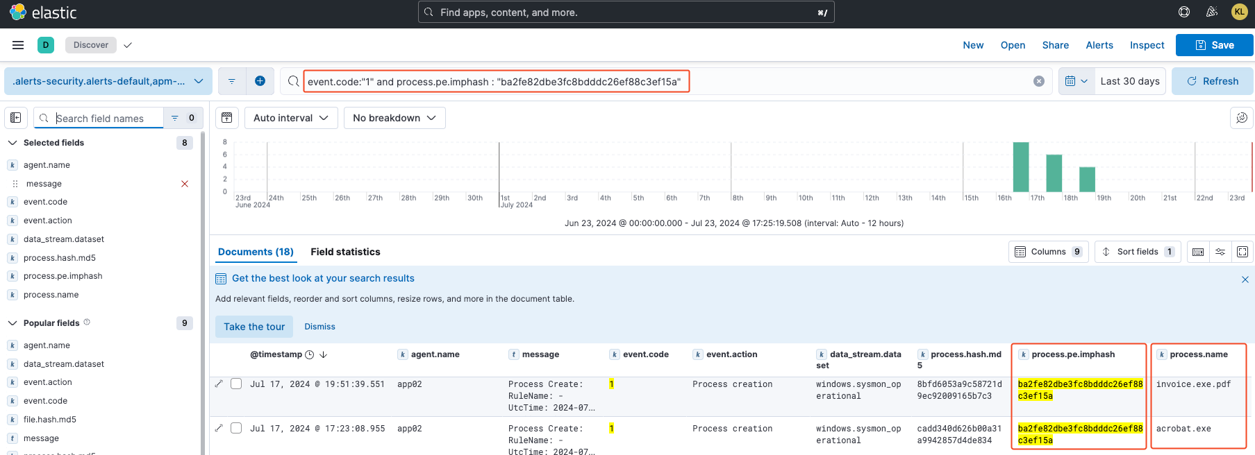KQL Query Example: Use KQL (Kibana Query Language) to filter for Predator malware using the IMPHASH. For instance, a query like